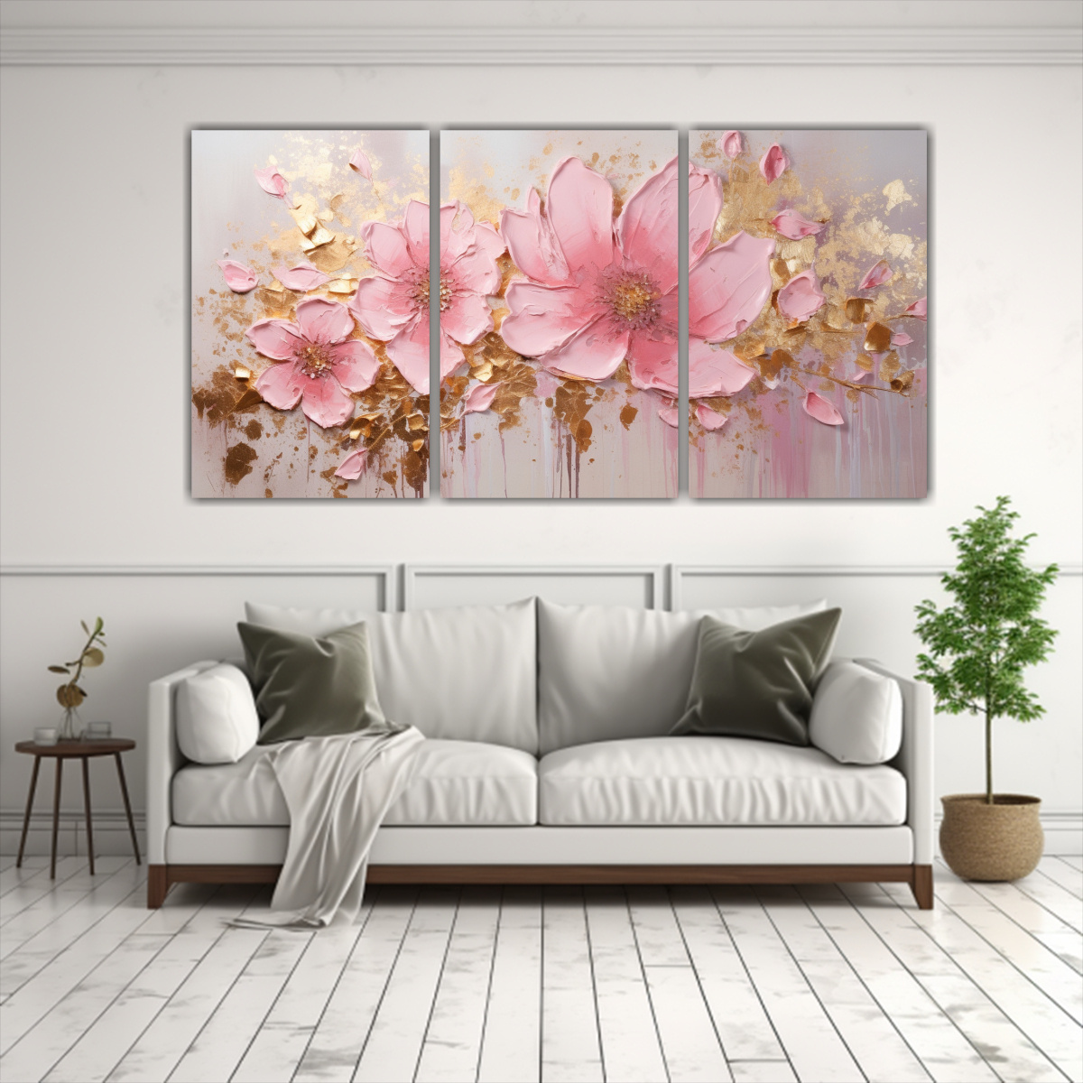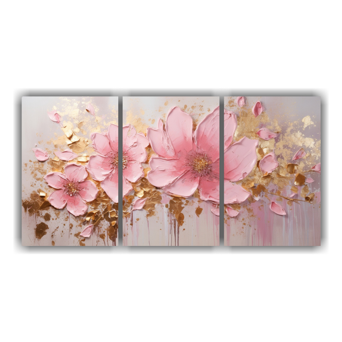 Decora tu hogar con una hermosa pintura en bastidor inspiración alegre de flores rosadas, en colores como el chocolate, plateado, beige y más