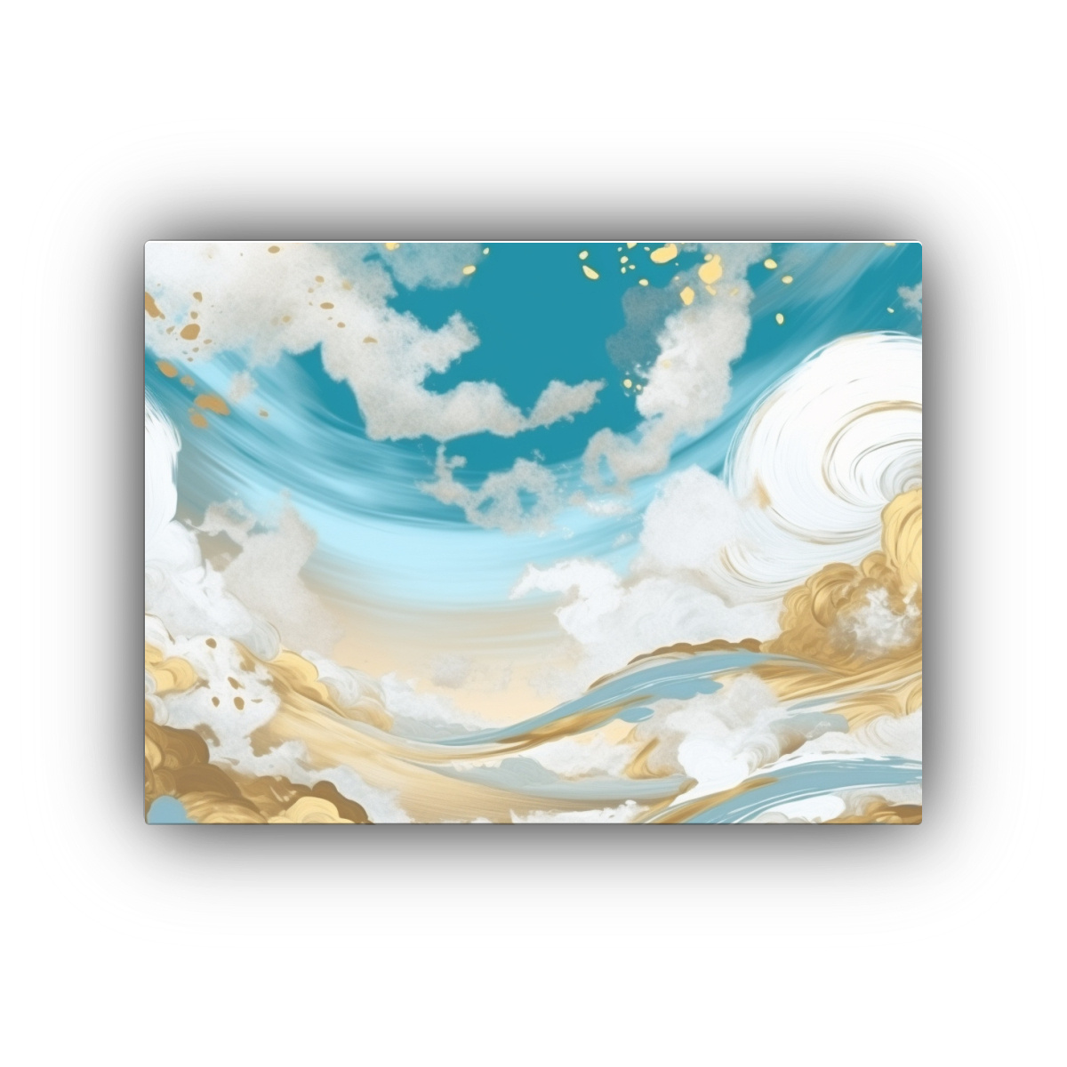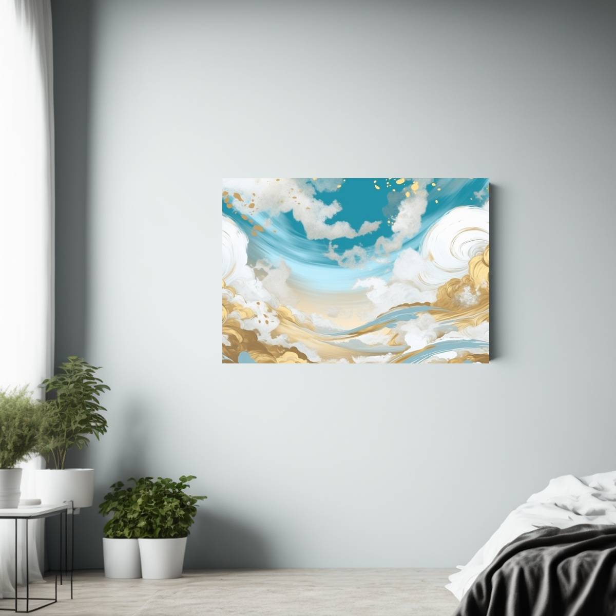 Pintura En Bastidor Moderna Combinación Blanco Oro Cielo Azul