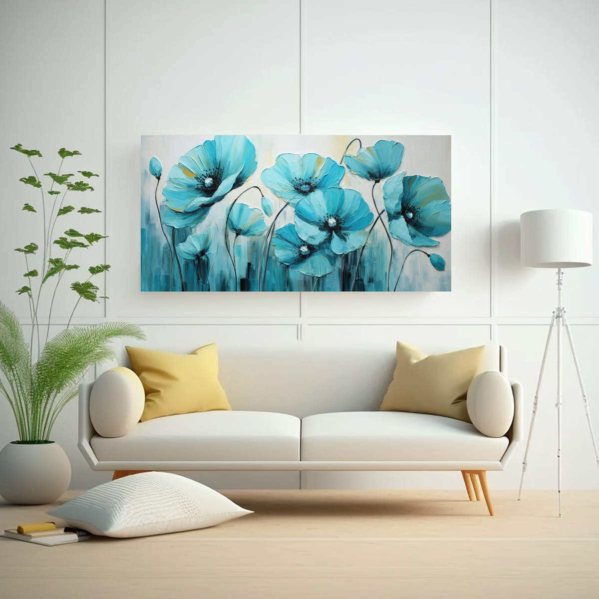 Pintura En Bastidor Moderno Urbano Con Flores Turquesas En Estilo Poppi.