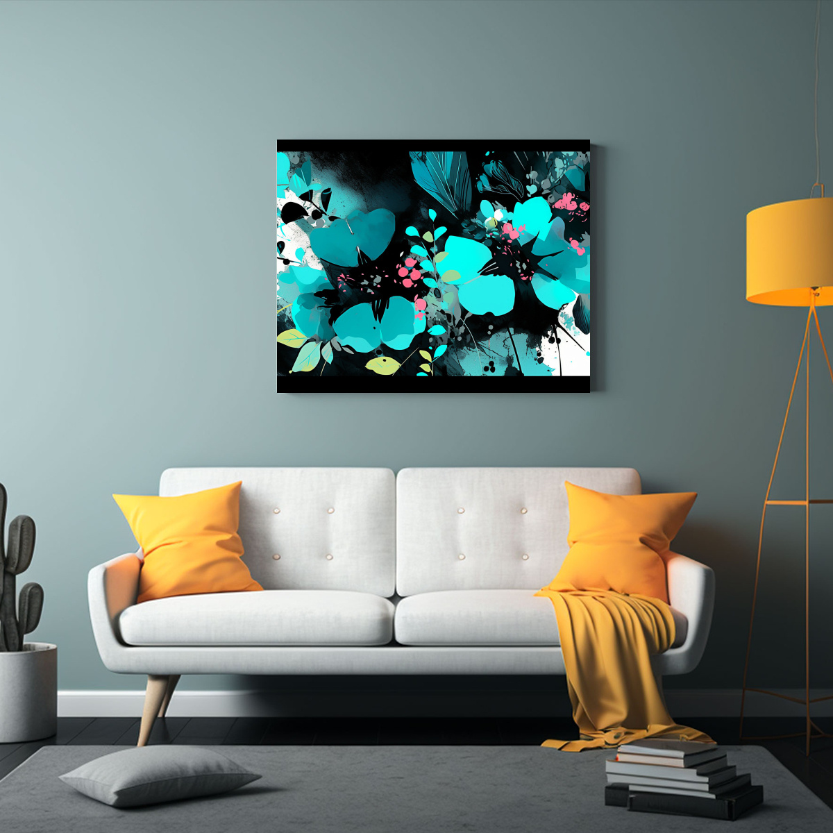 Este Cuadro en Bastidor Movimiento Turquesa y Negro se vería ideal en un ambiente elegante y moderno, como la sala de estar o el estudio Combínalo con muebles de tonos neutros para resaltar su belleza y crear un espacio lleno de estilo