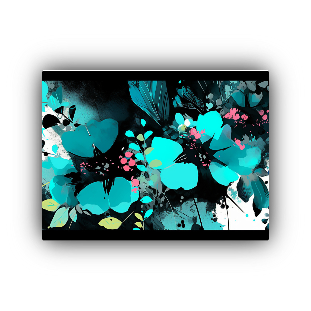 Pintura En Bastidor Movimiento Turquesa Y Negro Ambiente Neonoir