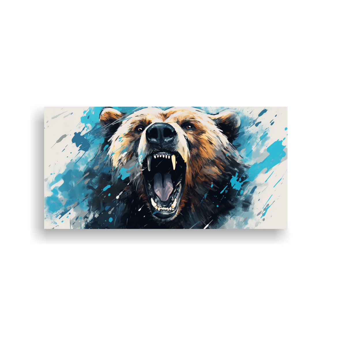 Pintura En Bastidor: Oso Grizzly En Tonos Turquesa Y Tintados