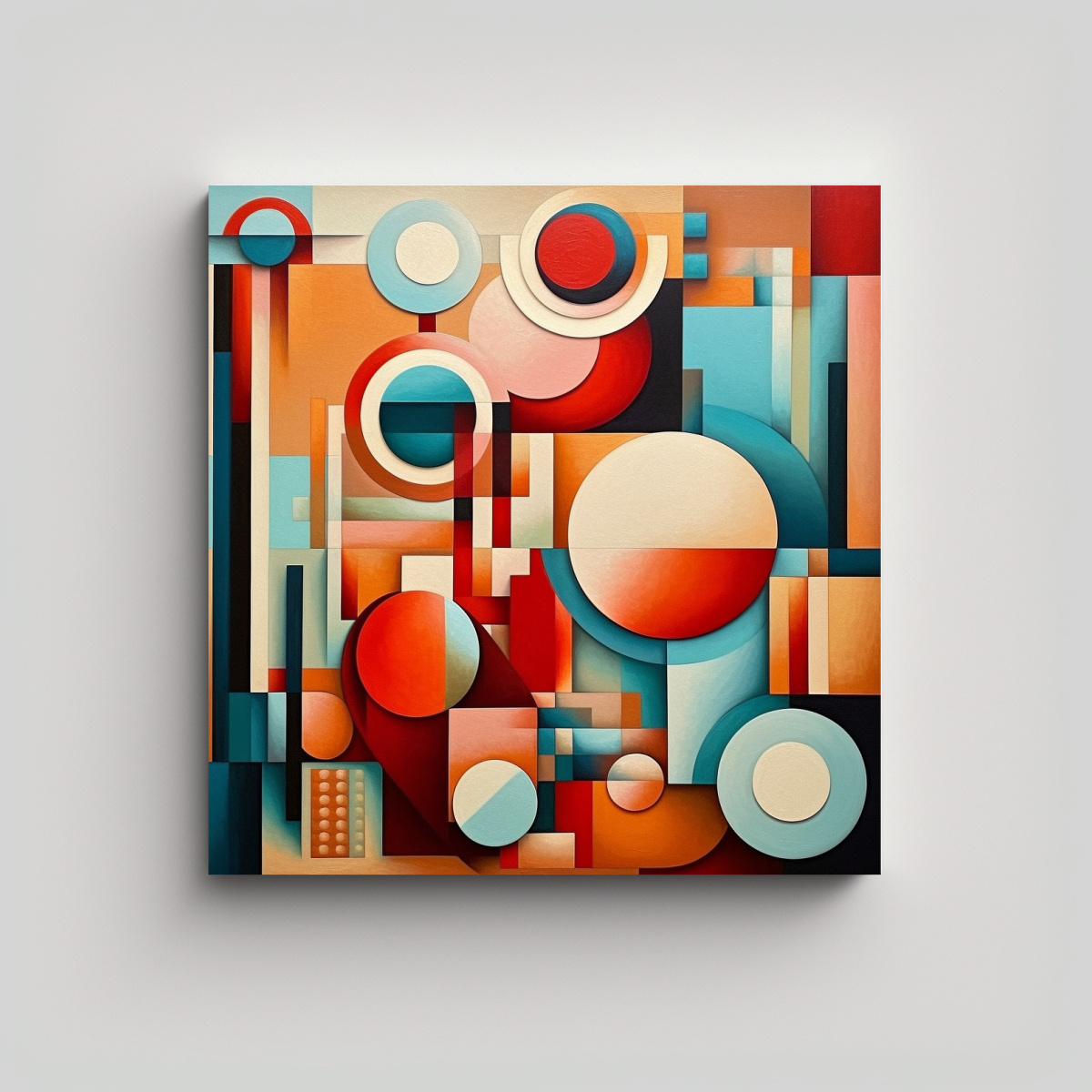 Dale vida a tu hogar con la ‘Tela en Bastidor Composición Obra maestra Sonyak’ que presenta colores vivos como Coral y Menta Encuentra la combinación perfecta para tus espacios con nuestra amplia gama de cuadros decorativos