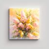 Pintura En Bastidor Vanguardia Espacio Amarillo Y Magenta Con Flores En Lienzo Decorativo