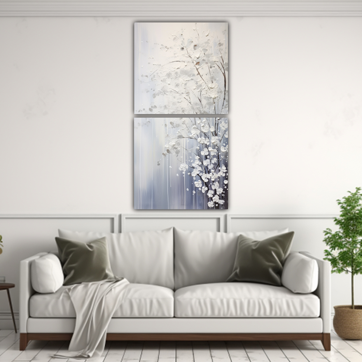 DecoCuadros ofrece cuadros decorativos impresos en tela de alta calidad con bastidores de madera Nuestros diseños exclusivos en este cuadro exuberante en blanco y plata te brindarán la mejor calidad del mercado a precios económicos Además, ofrecemos entregas rápidas y gratuitas en Santiago y envíos express a regiones ¡No te pierdas la oportunidad de embellecer tus espacios con este cuadro único!