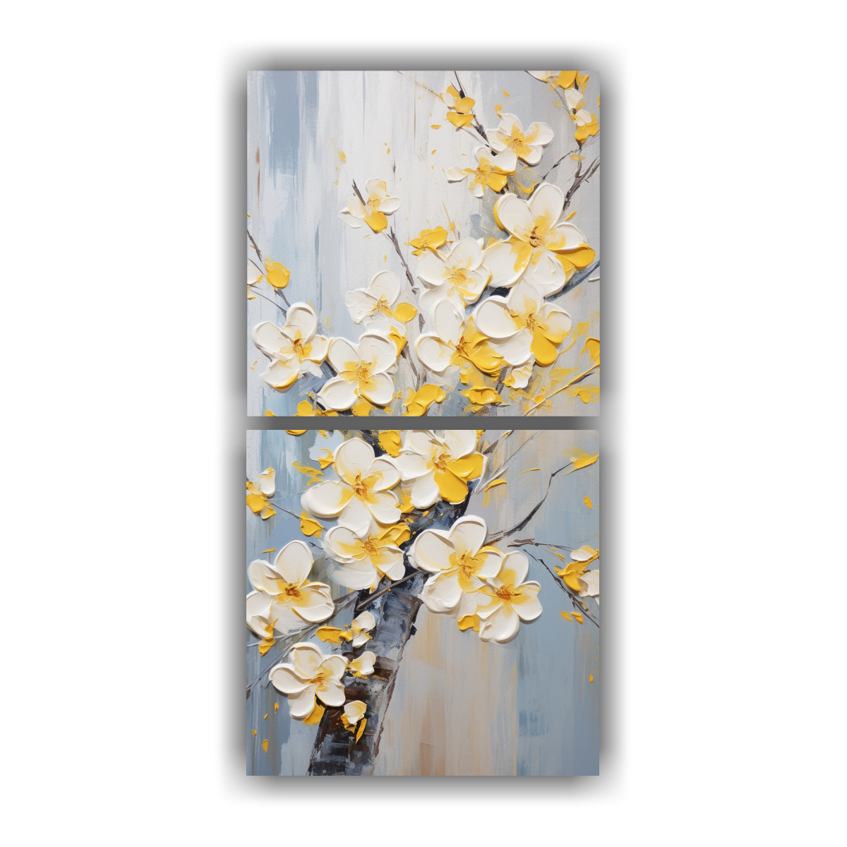 Este cuadro abstracto cerezos amarillos en flor quedará perfecto en tu sala de estar, combinándolo con muebles en tonos neutros como gris o beige Además, puedes colocarlo en un marco dorado para resaltar aún más su elegancia ¡Crea un ambiente moderno y relajante con este cuadro exclusivo de DecoCuadros!