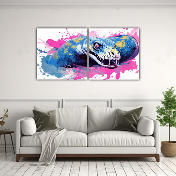 Este cuadro Canvas Anaconda en tonos pastel y azul estilo neo pop es perfecto para destacar en un salón de estilo contemporáneo Colócalo sobre un mueble blanco para resaltar sus colores y crear un punto focal en la habitación ¡Combina con cojines turquesa y accesorios plateados para una decoración elegante y chic!