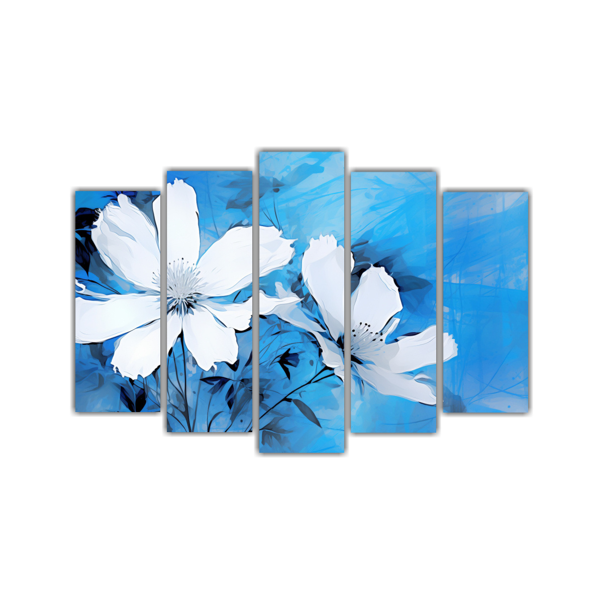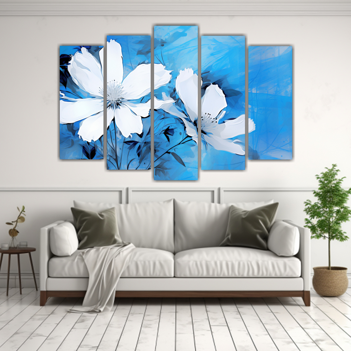 Pintura En Lienzo Brillante Blanco Y Azul Estilo Neonoir Decorativo.
