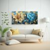Pintura En Lienzo Con Detalle Creativo De Flores Azules Y Doradas