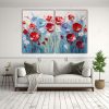 Pintura En Lienzo Con Detalles Abstractos De Flores En Rojo Y Azul