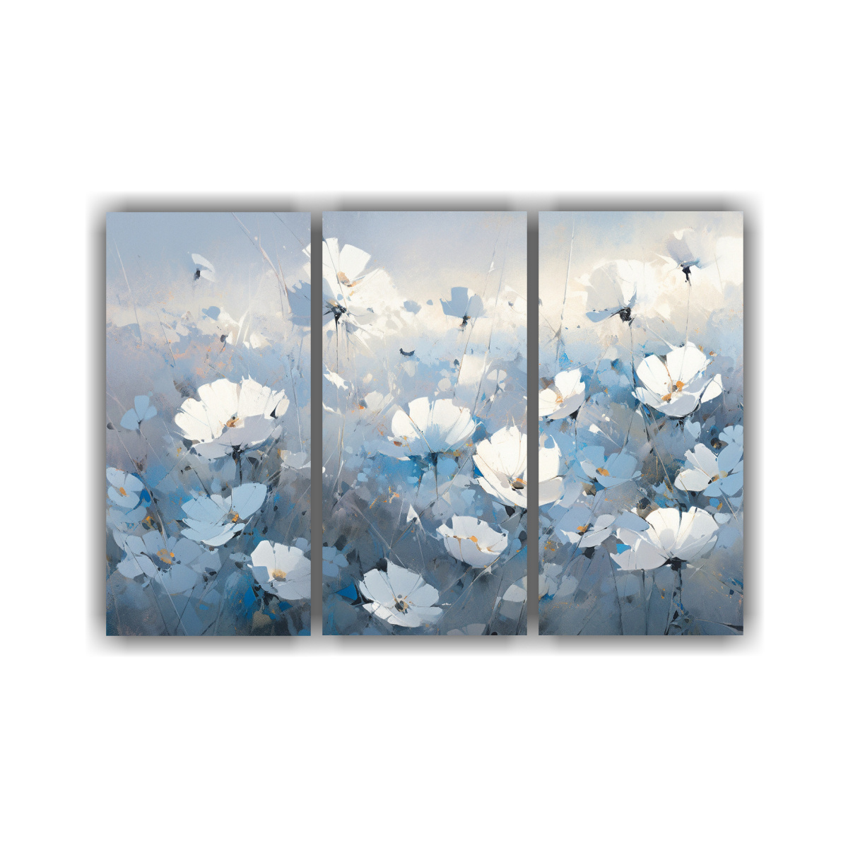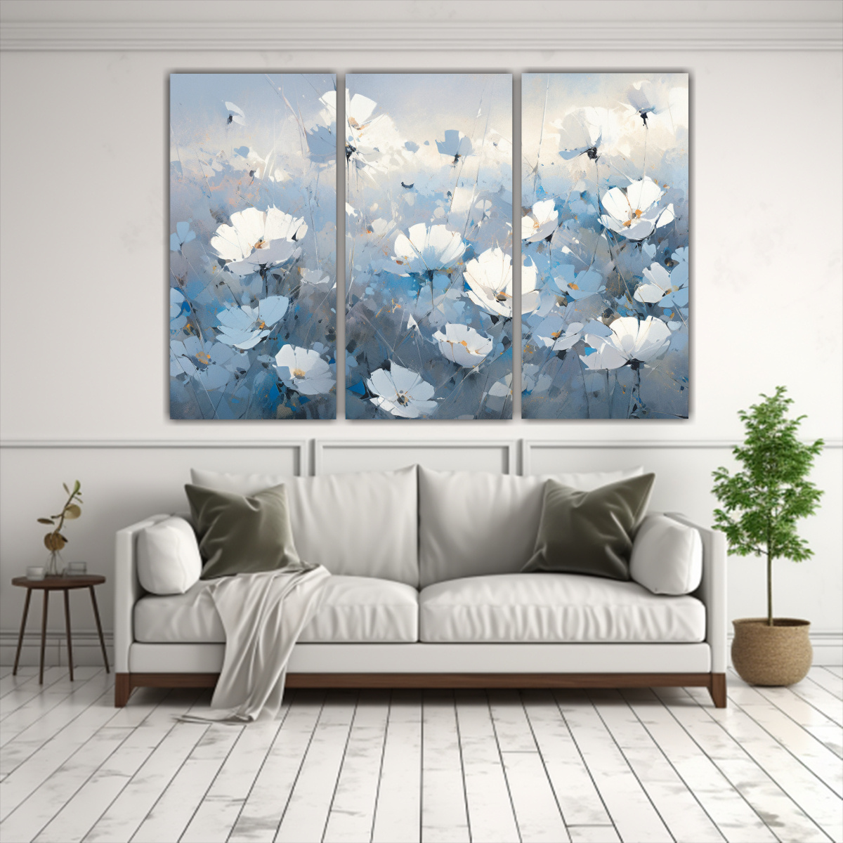 Este cuadro de flores plateadas en lienzo es ideal para embellecer tu sala de estar Colócalo sobre un mueble blanco para resaltar su elegancia y combinar con cojines en tonos turquesa y gris para una decoración armoniosa
