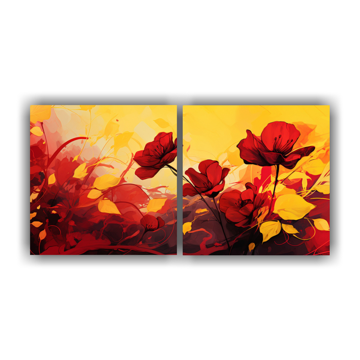 Pintura En Lienzo Con Luminosidad En Amarillo Y Rojo, Atmosfera Neonoir En El Estilo De Decoración De Pinturas