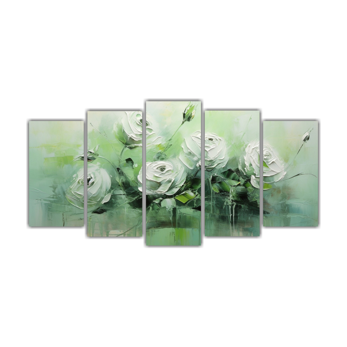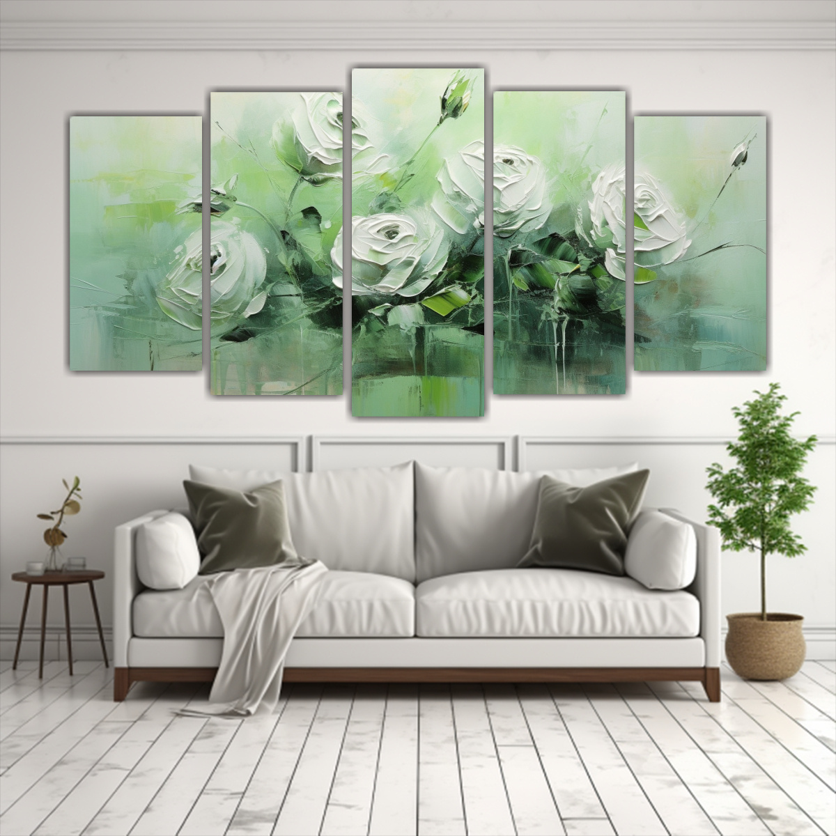 Pintura En Lienzo De 5 Composiciones Inspiradoras De Rosas Verdes En El Estilo De La Decoración.