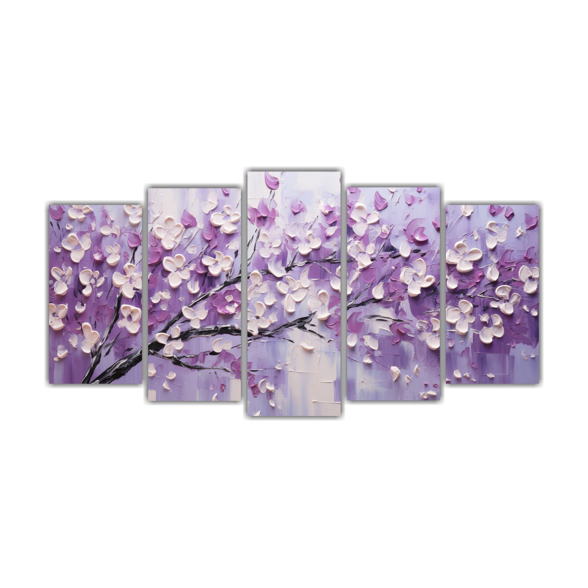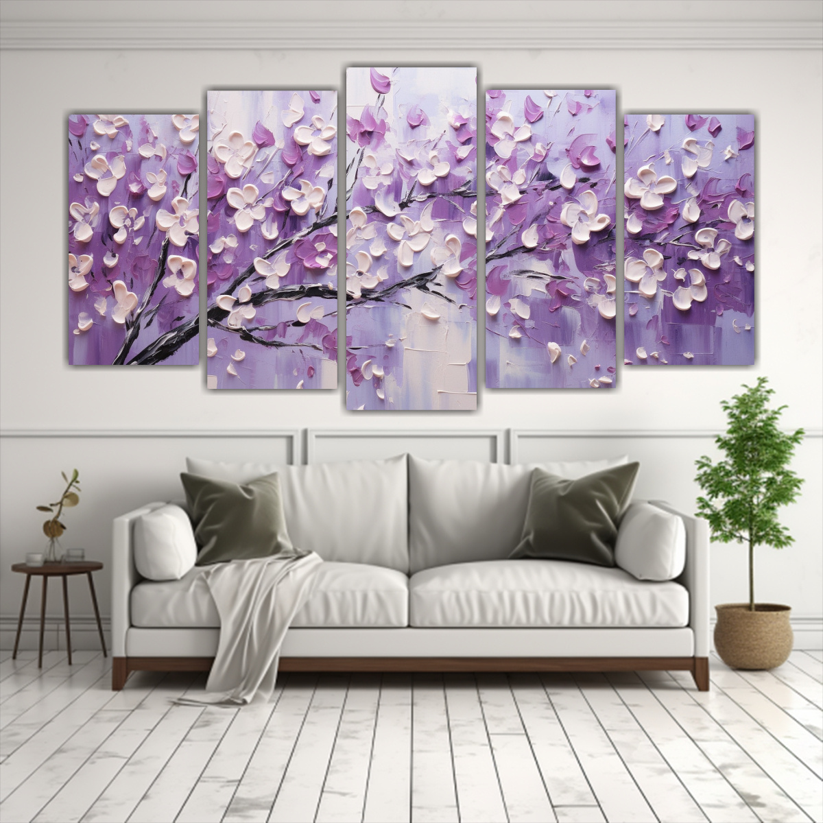 Este cuadro de Cerezos Morados Mágicos sería perfecto para decorar una sala de estar o dormitorio con tonos neutros, como grises o beige Agregaría un toque de color y sofisticación a la habitación, creando un ambiente relajante y elegante