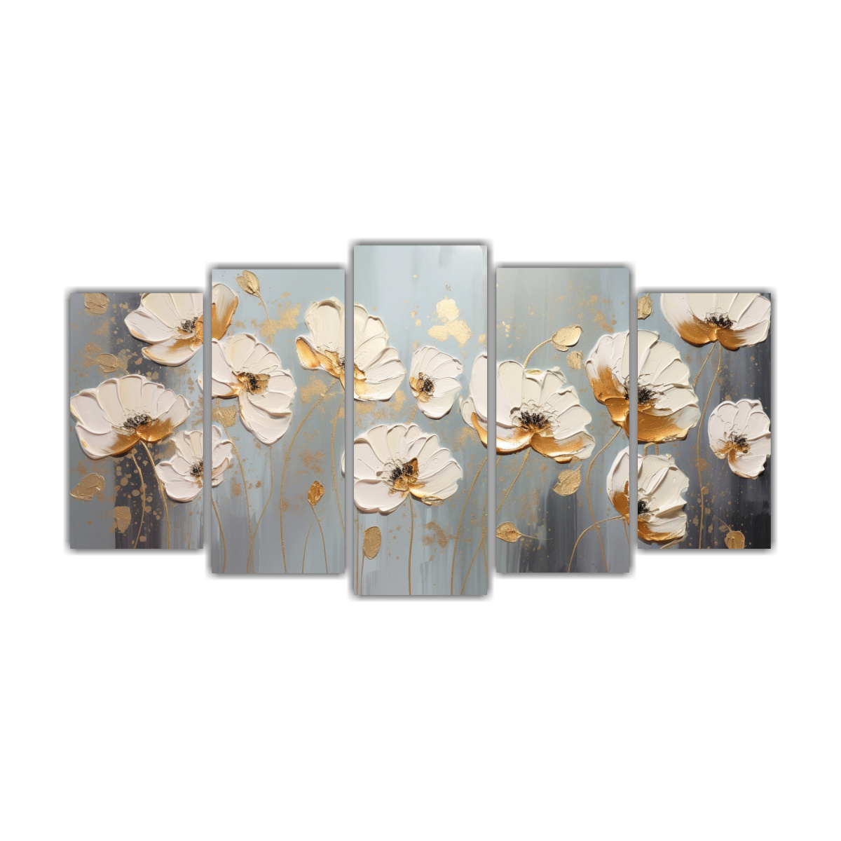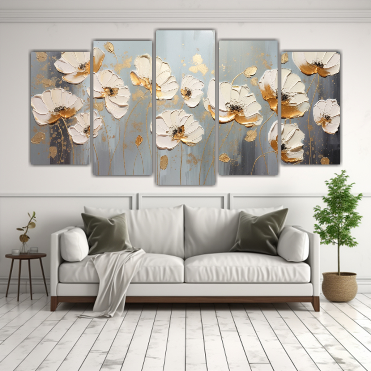 Pintura En Lienzo De Amapolas Doradas Para Decoración De Comedor