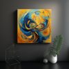 Pintura En Lienzo De Arte Vintage Acrílica Abstracta Azul Y Amarilla