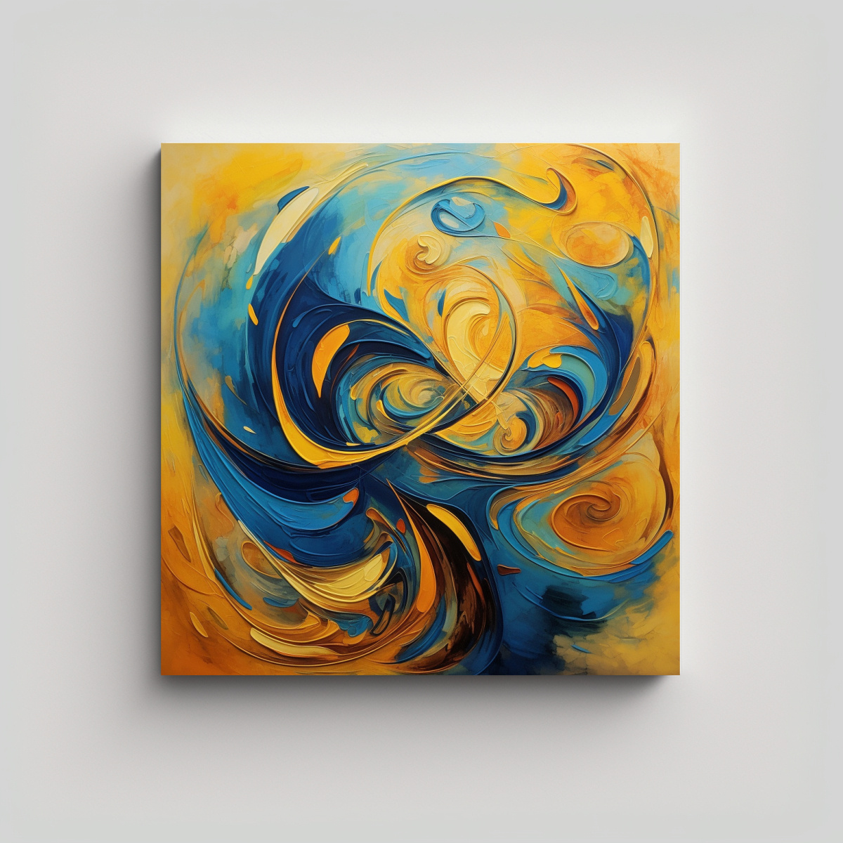 Este cuadro en tonos azul y amarillo es ideal para colocar en una sala de estar de estilo moderno, creando un punto focal llamativo Combínalo con cojines en tonos amarillos y azules para lograr un ambiente armonioso y lleno de estilo