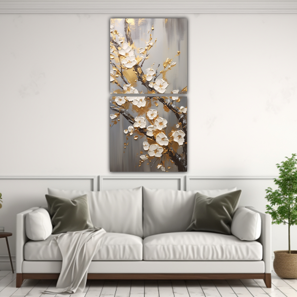 Este cuadro de cerezos dorados se vería espectacular en el salón de tu hogar, sobre una pared de tonos neutros como blanco o beige Combínalo con muebles y accesorios en tonos tierra para darle un toque elegante y natural a tu espacio