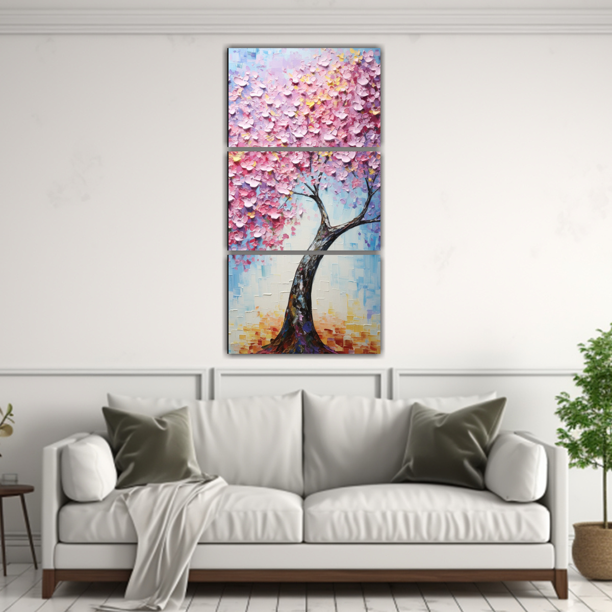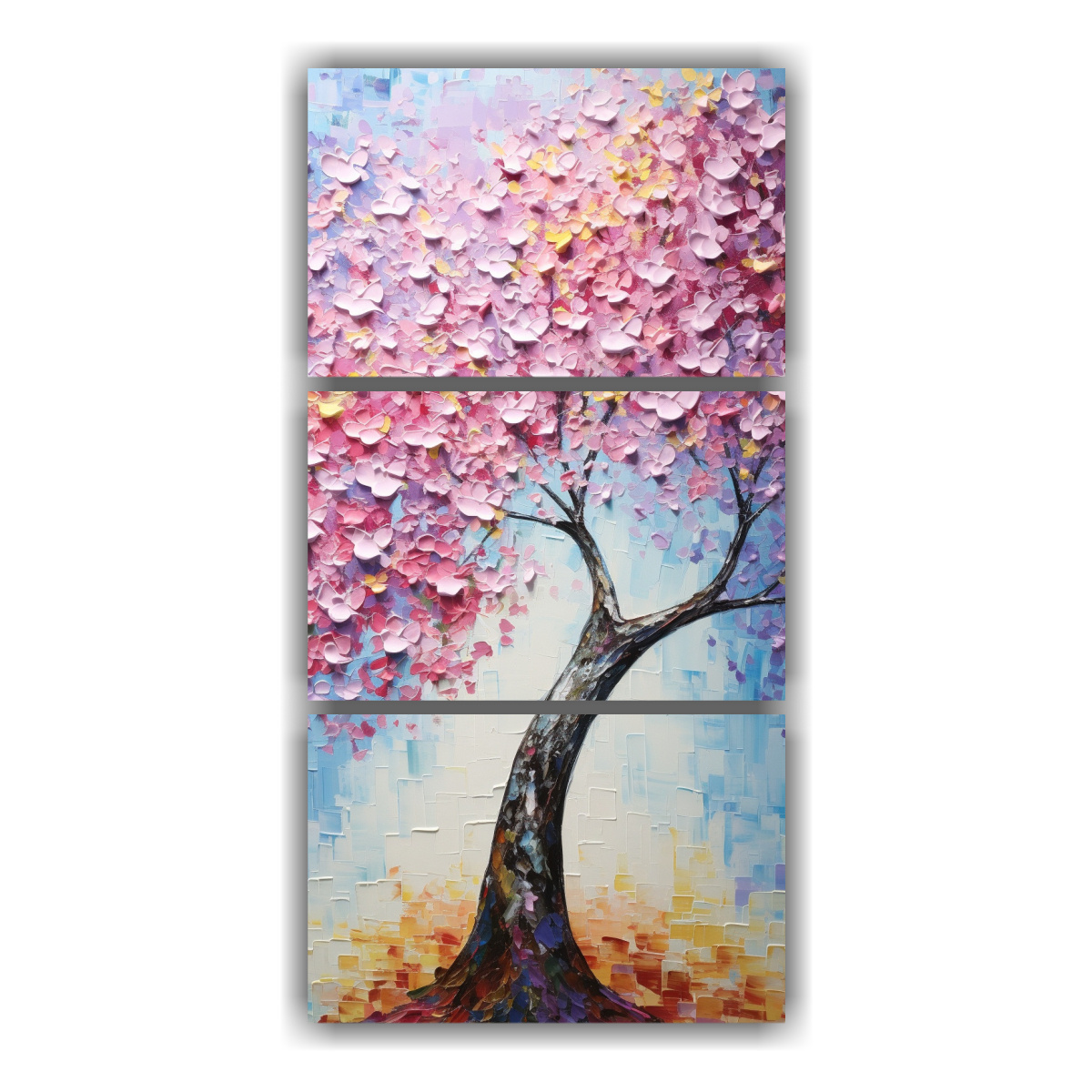 Renueva tu espacio con el Set de 3 Artes de Pared Modernos Minimalistas a rainbow colors Cherry blossoms painting on canvas Descubre la belleza de la naturaleza en tu hogar Envíos express a regiones disponibles ¡Decora con estilo y originalidad!