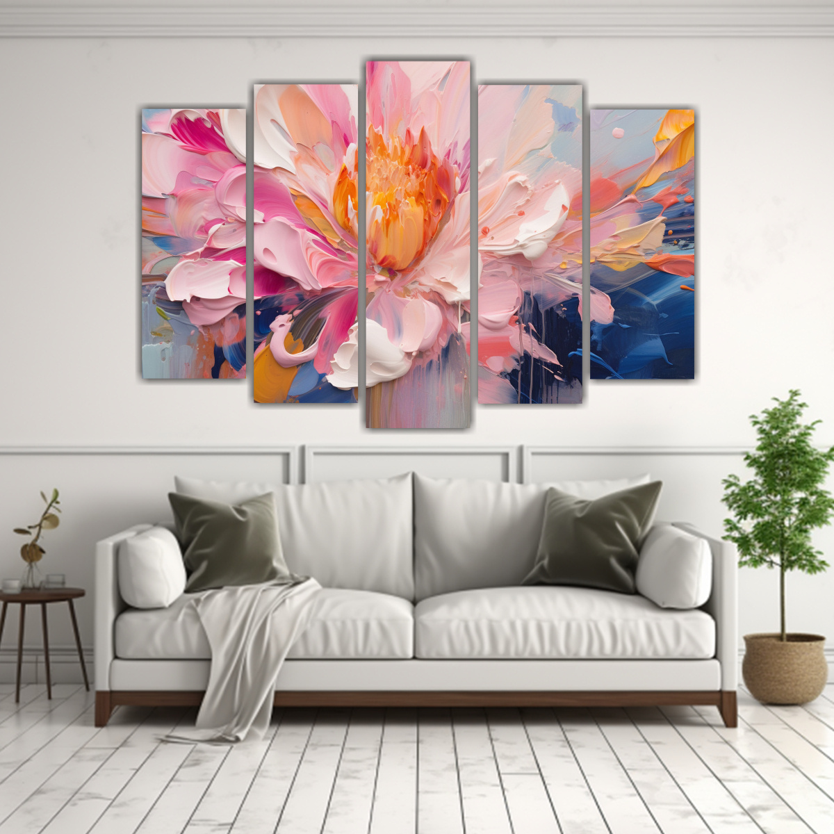 Pintura En Lienzo De Cinco Canvas De Una Flor Rosa En El Arte Decorativo.