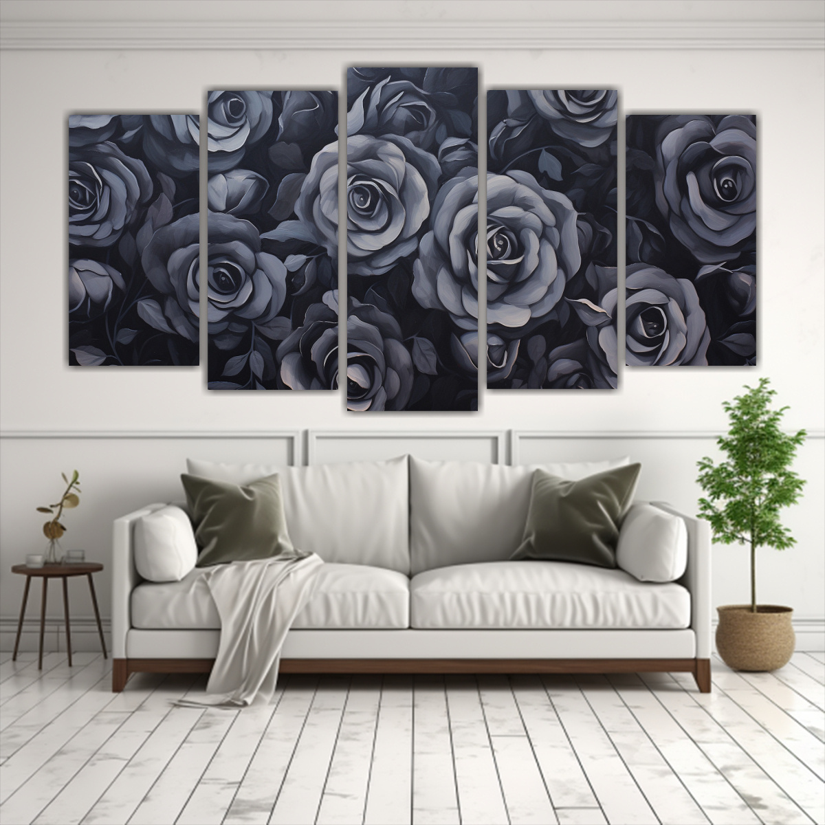 Pintura En Lienzo De Cinco Cuadros Tonos Figuras Con Rosas Negras En El Estilo De Decoración De Pinturas