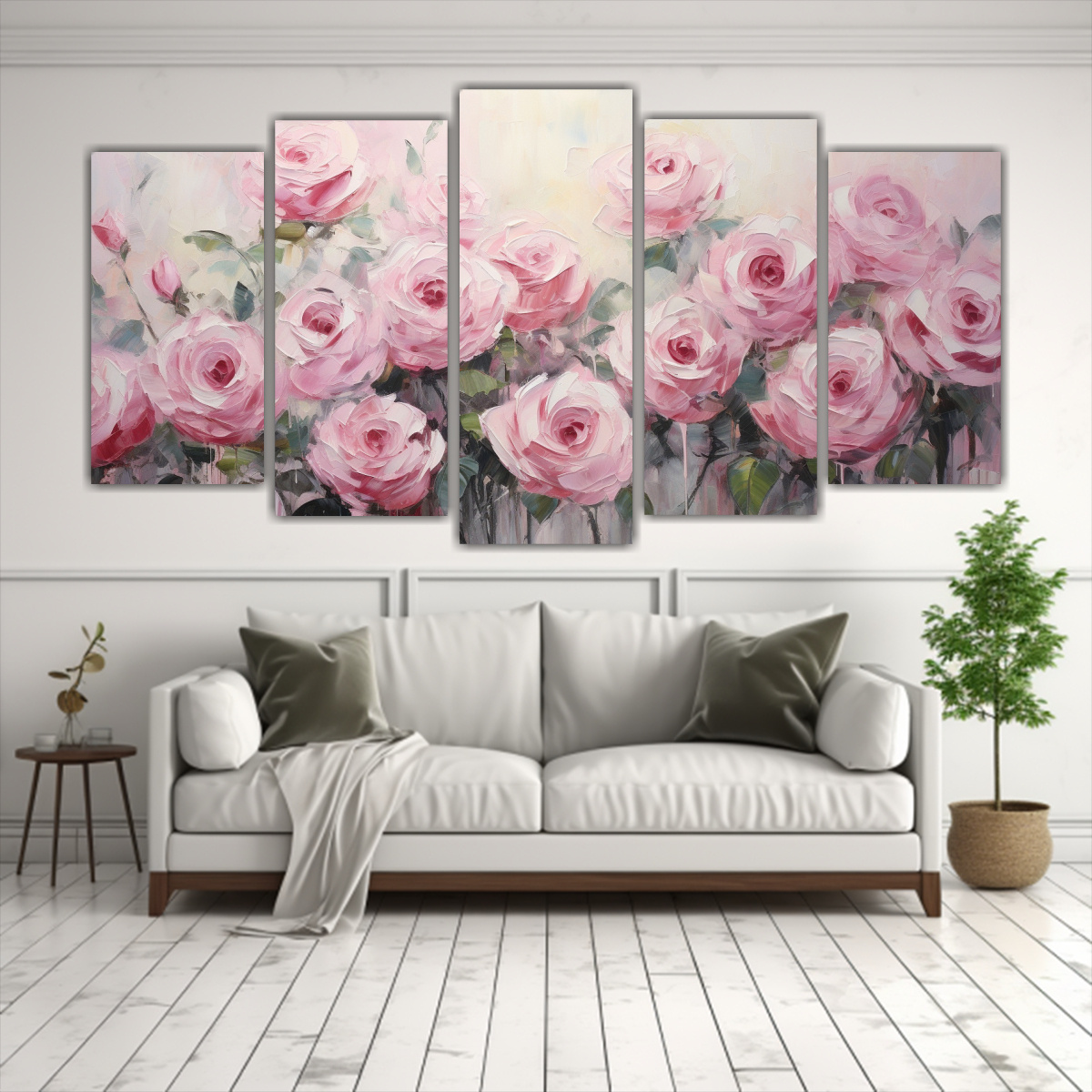 Decora tu hogar u oficina con este cuadro pintura en lienzo de cinco rosas rosadas en el estilo de Poder a pink Roses Confeccionado en tela de alta calidad y bastidores de madera, garantizamos la mejor calidad del mercado Envíos rápidos y gratuitos en Santiago y envíos a regiones express