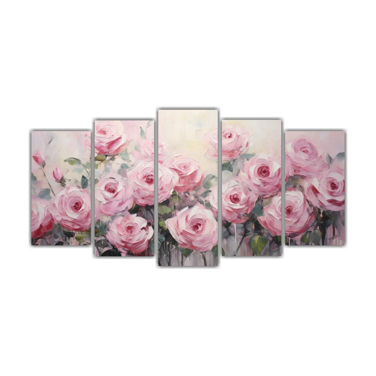 Pintura En Lienzo De Cinco Rosas Rosadas En El Estilo De Poder A Pink Roses