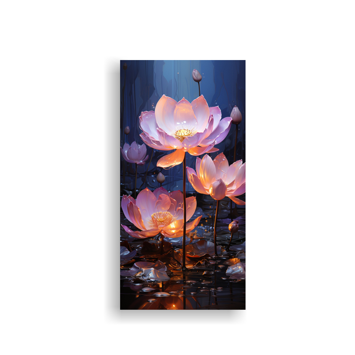 Pintura En Lienzo De Composición Multicolor De Loto Negro Que Brilla En La Oscuridad En Decoración S