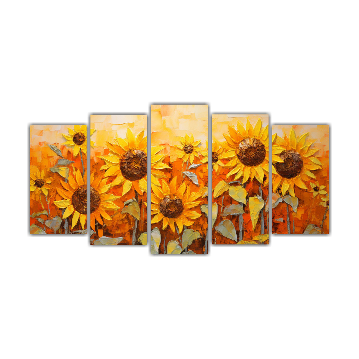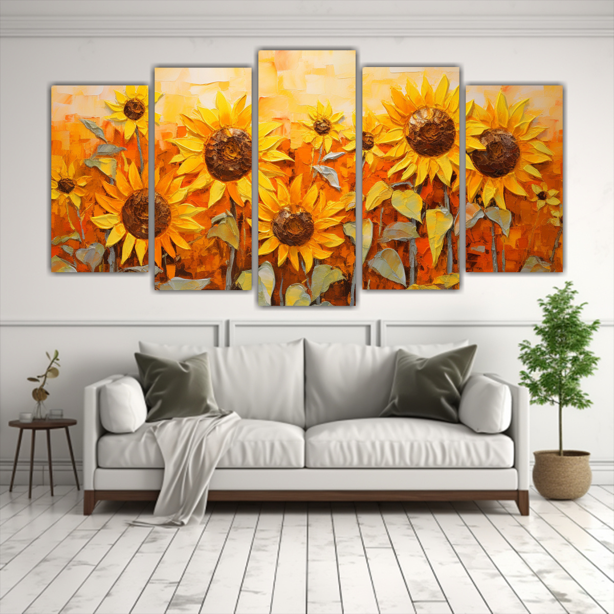 Pintura En Lienzo De Composición Temática De Flores De Girasol Naranjas En Estilo Decorativo