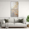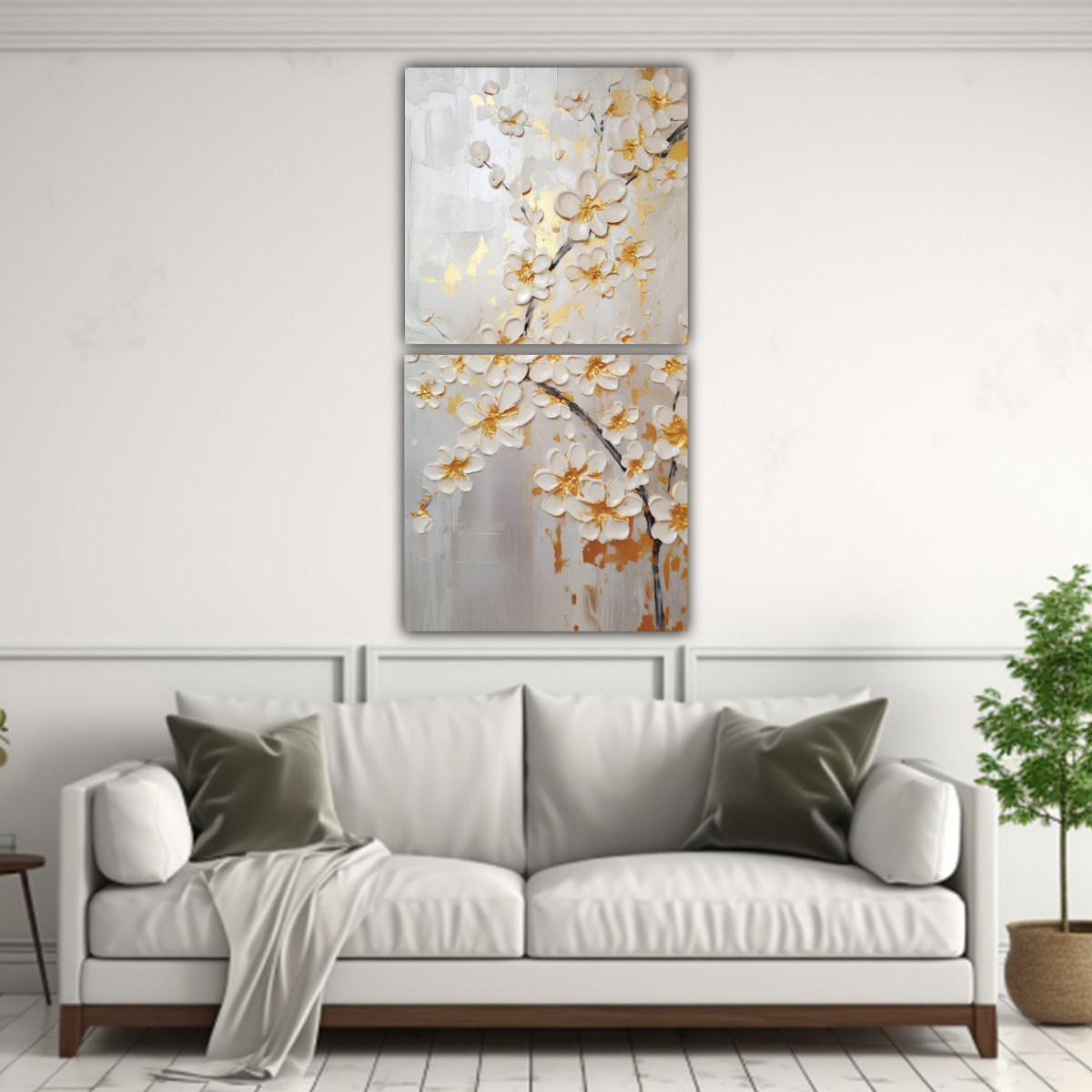 Pintura En Lienzo De Dos Cuadros Movimiento Urbano Con Flores De Cerezo Doradas En La Decoración