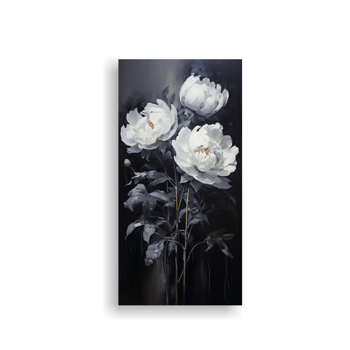 Este cuadro de peonías negras en lienzo es perfecto para decorar tu sala de estar Colócalo sobre una pared de color blanco o neutro para que resalte y combina con muebles en tonos plateados, grises o negros Agrega cojines y cortinas en tonos dorados y azul marino grisáceo para completar la elegancia de tu espacio ¡Crea un ambiente sofisticado y único con este diseño exclusivo de DecoCuadros!