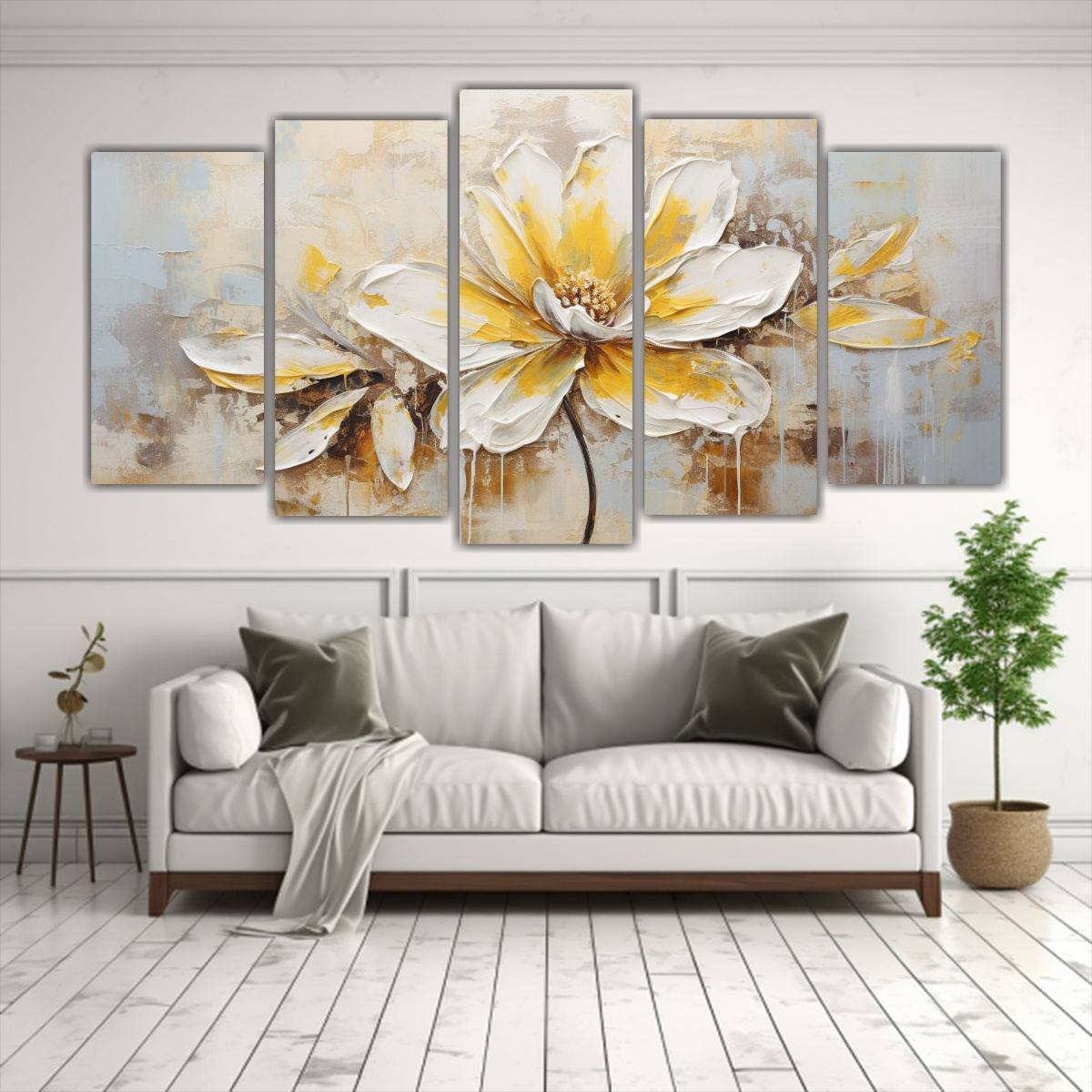 Coloca este hermoso cuadro de Flor Amarilla en Lienzo en tu sala de estar para darle calidez y estilo a tu espacio Combínalo con muebles en tonos neutros como beige o gris, y agrega acentos en coral o chocolate para resaltar la belleza de la pintura ¡Crea un ambiente acogedor y sofisticado!