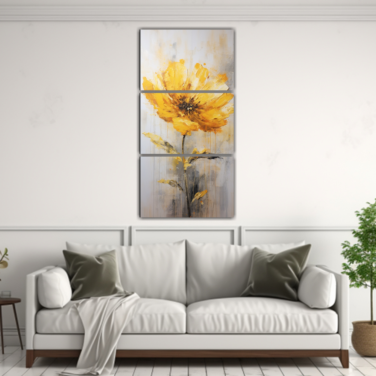 Este cuadro de flores amarillas en estilo decorativo es ideal para colocar en la sala de estar o en el dormitorio Combina perfectamente con muebles en tonos neutros como beige, gris y chocolate, creando un ambiente cálido y acogedor También puedes colocarlo en la cocina o en el comedor para agregar un toque de color a estos espacios
