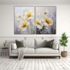 Pintura En Lienzo De Flores Amarillas Y Blancas Para Decoración.