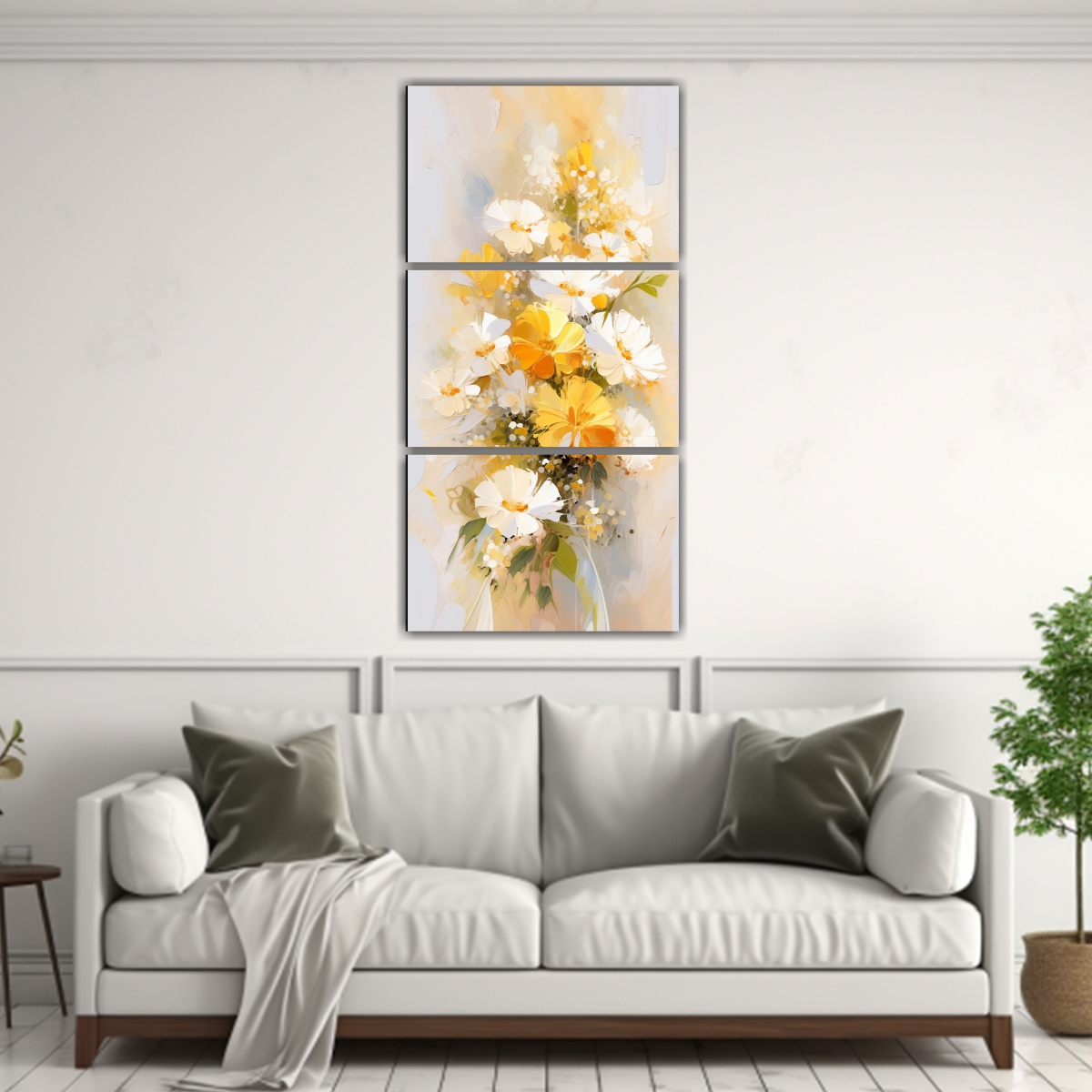 Pintura En Lienzo De Flores Amarillas Y Blancas Para Impacto Visual.