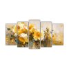 Pintura En Lienzo De Flores Amarillas Y Cian, Arte Hecho A Mano