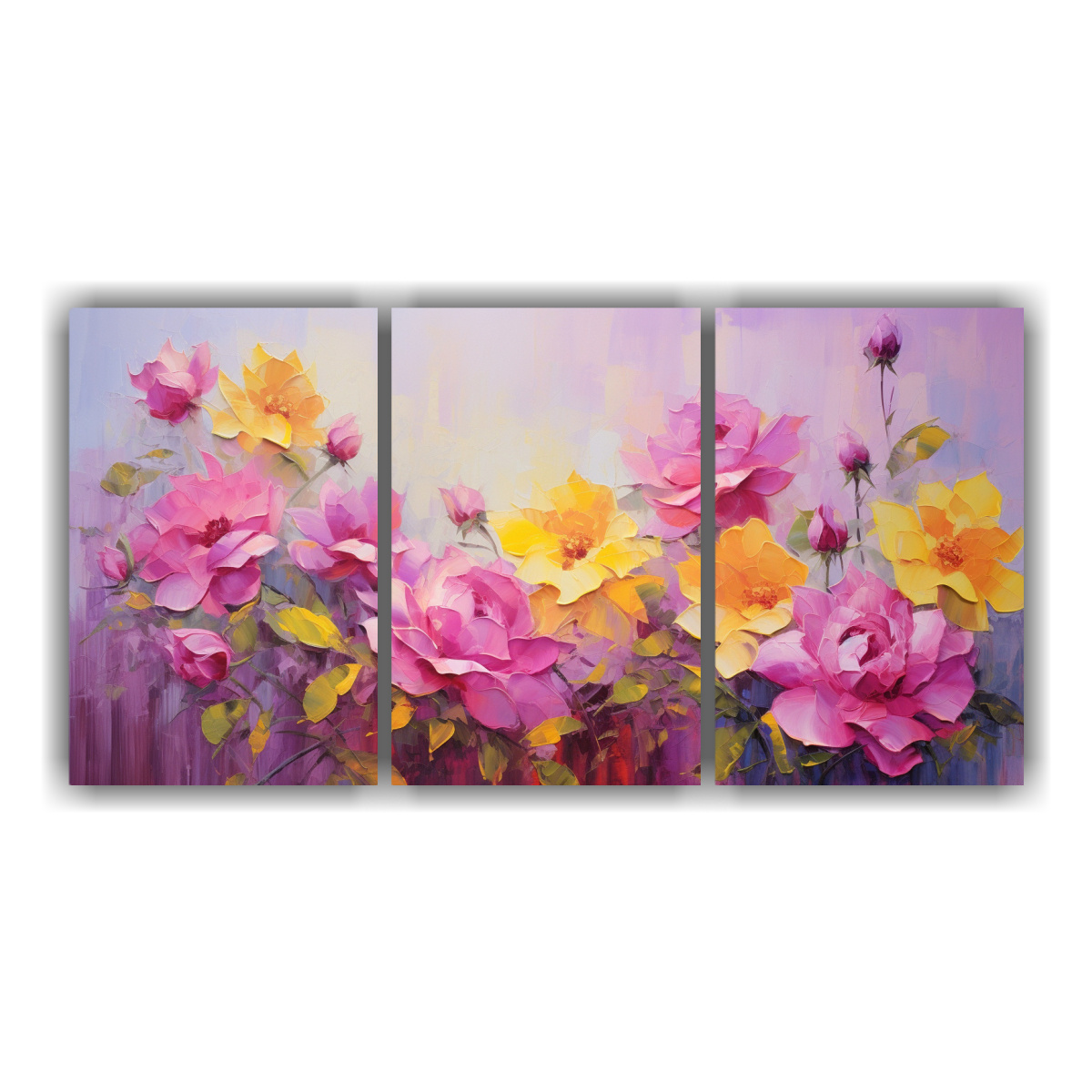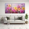 Pintura En Lienzo De Flores Amarillas Y Magenta De Alta Calidad Decorativa En Tres Canvas