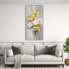 Pintura En Lienzo De Flores Amarillas Y Plateadas Para Decoración.