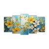 Pintura En Lienzo De Flores Amarillas Y Verde Azulado En Cuadros Vanguardistas
