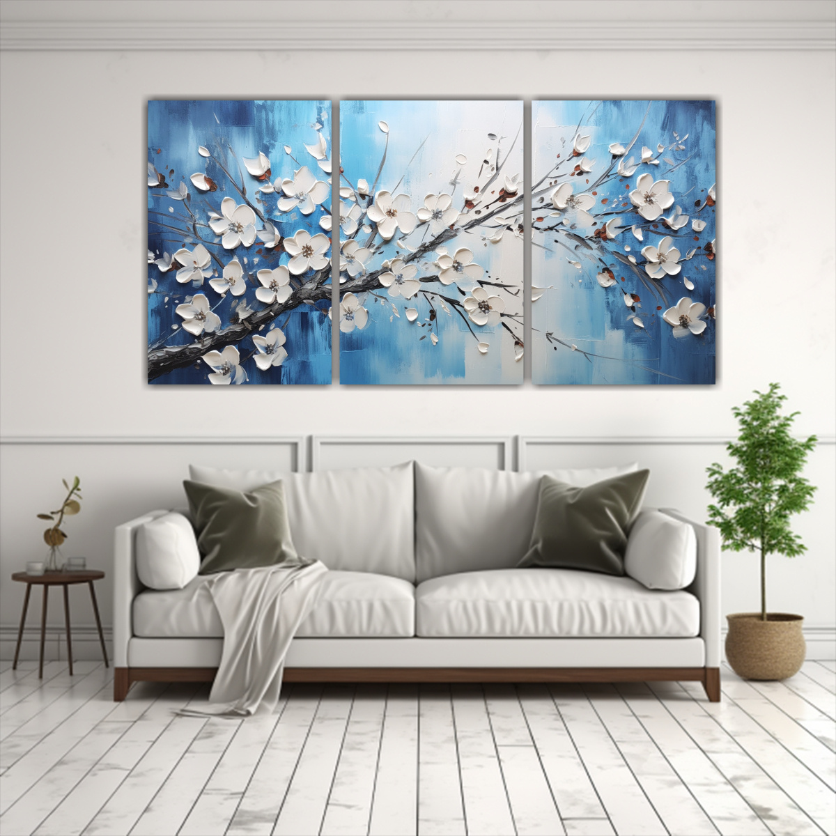 Pintura En Lienzo De Flores De Cerezo Azules En El Conjunto De 3 Pinturas Decorativas