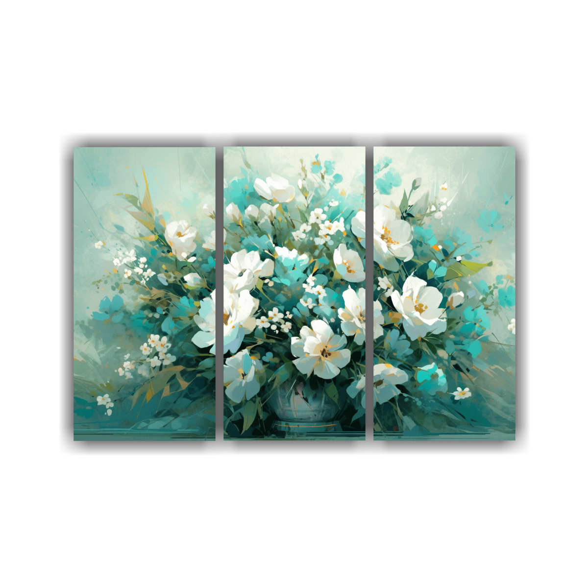 Este cuadro de flores en colores turquesa al estilo arte callejero sería ideal para colocar en la sala de estar, creando un punto focal de color y modernidad Combínalo con cojines en tonos neutros y accesorios en plateado para un ambiente sofisticado y contemporáneo