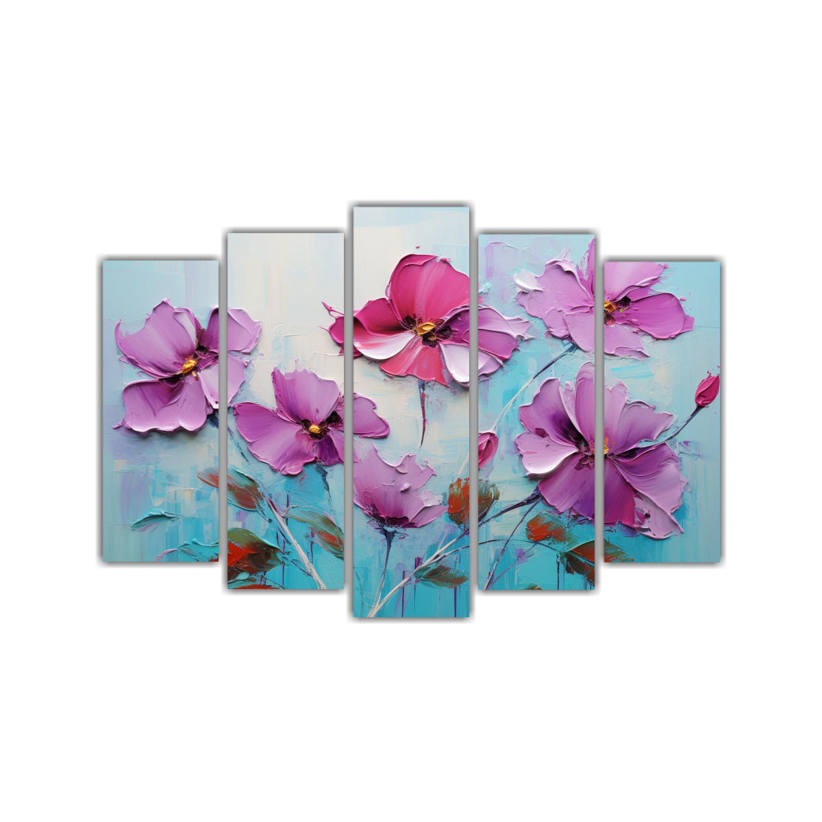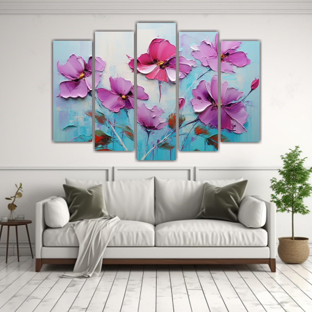 Pintura En Lienzo De Flores En Colores Turquesa Y Rosa