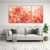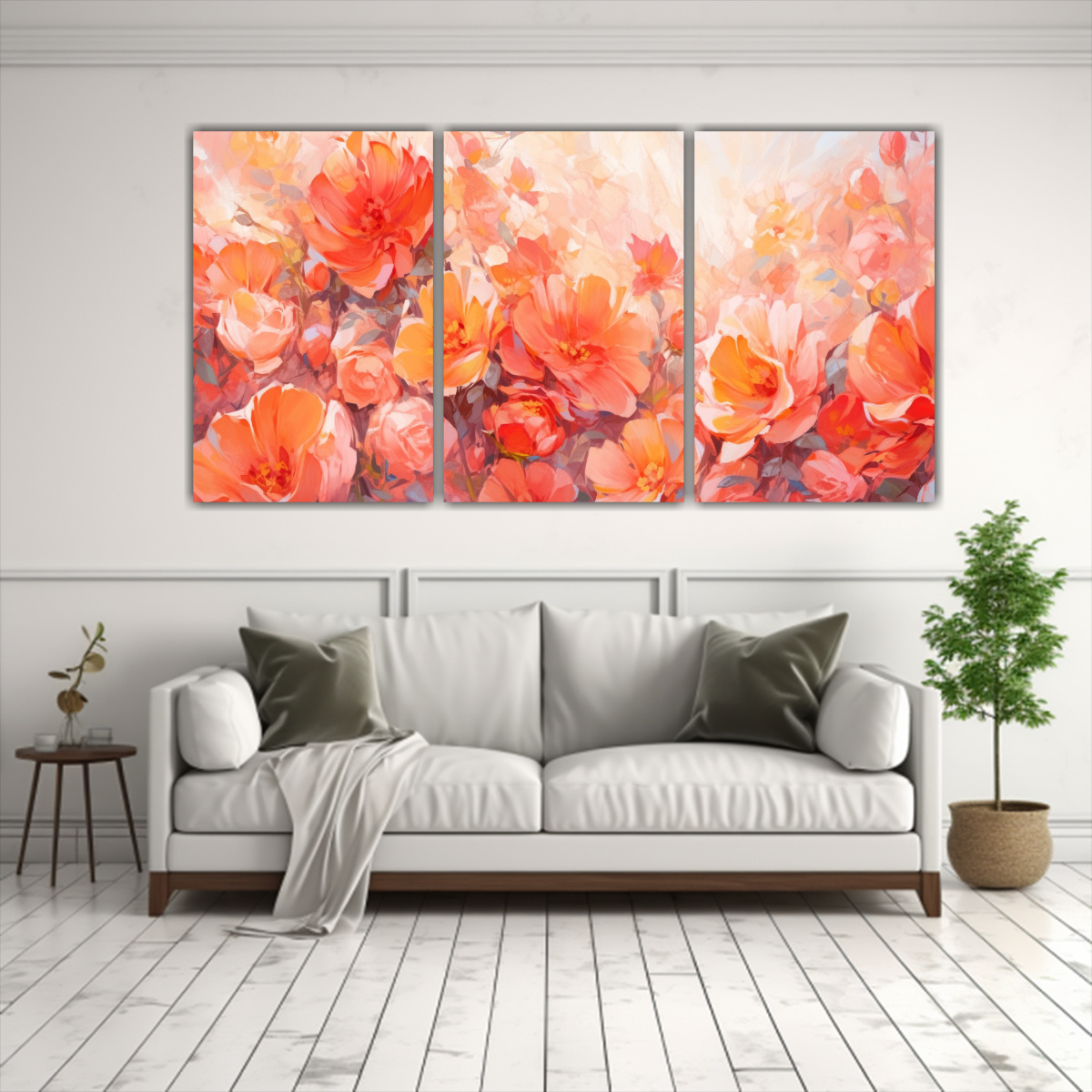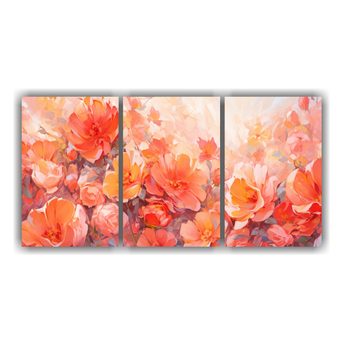 Pintura En Lienzo De Flores En Colores Vibrantes Naranja Y Rosa