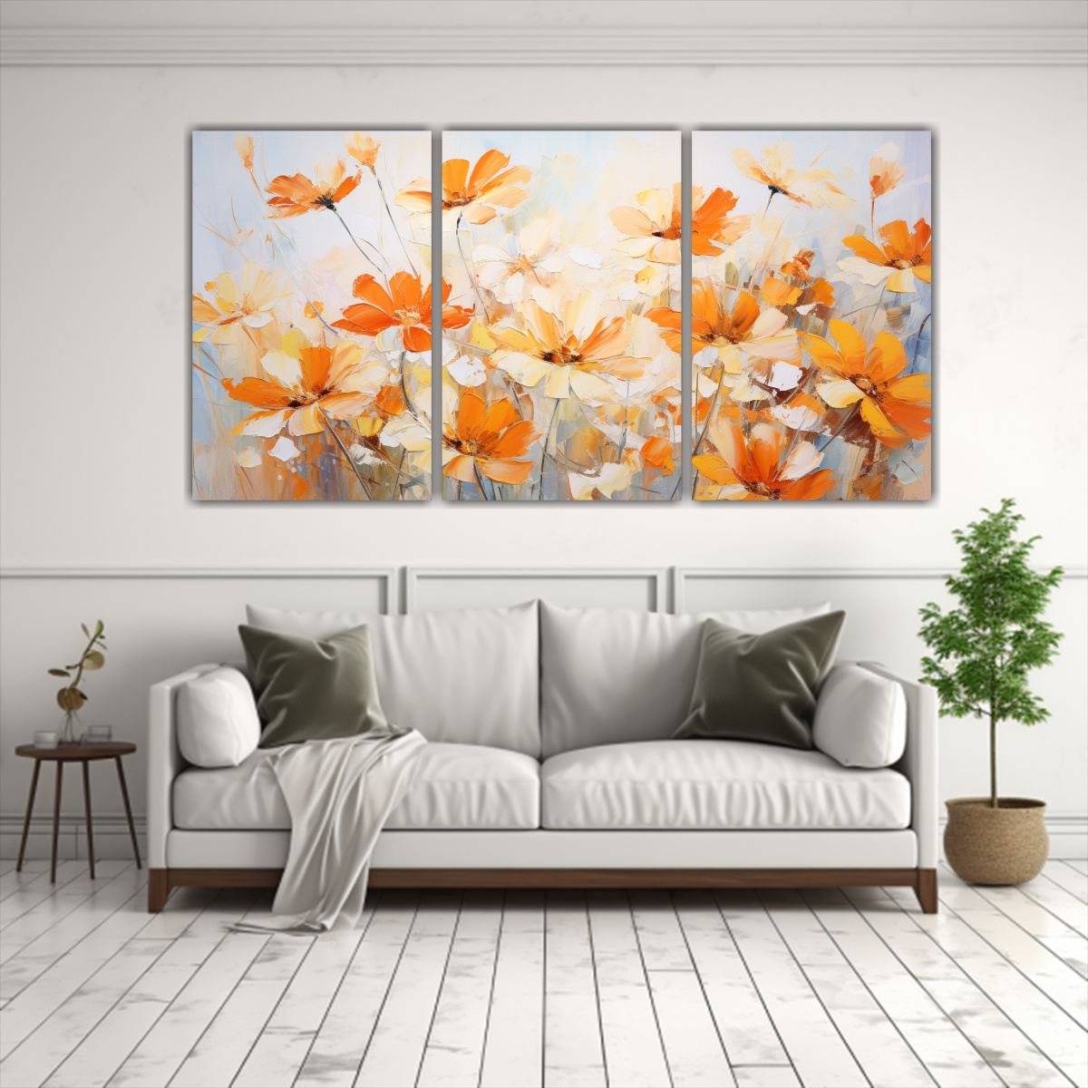 Pintura En Lienzo De Flores En Tonos Naranjas Estilo Decorativo