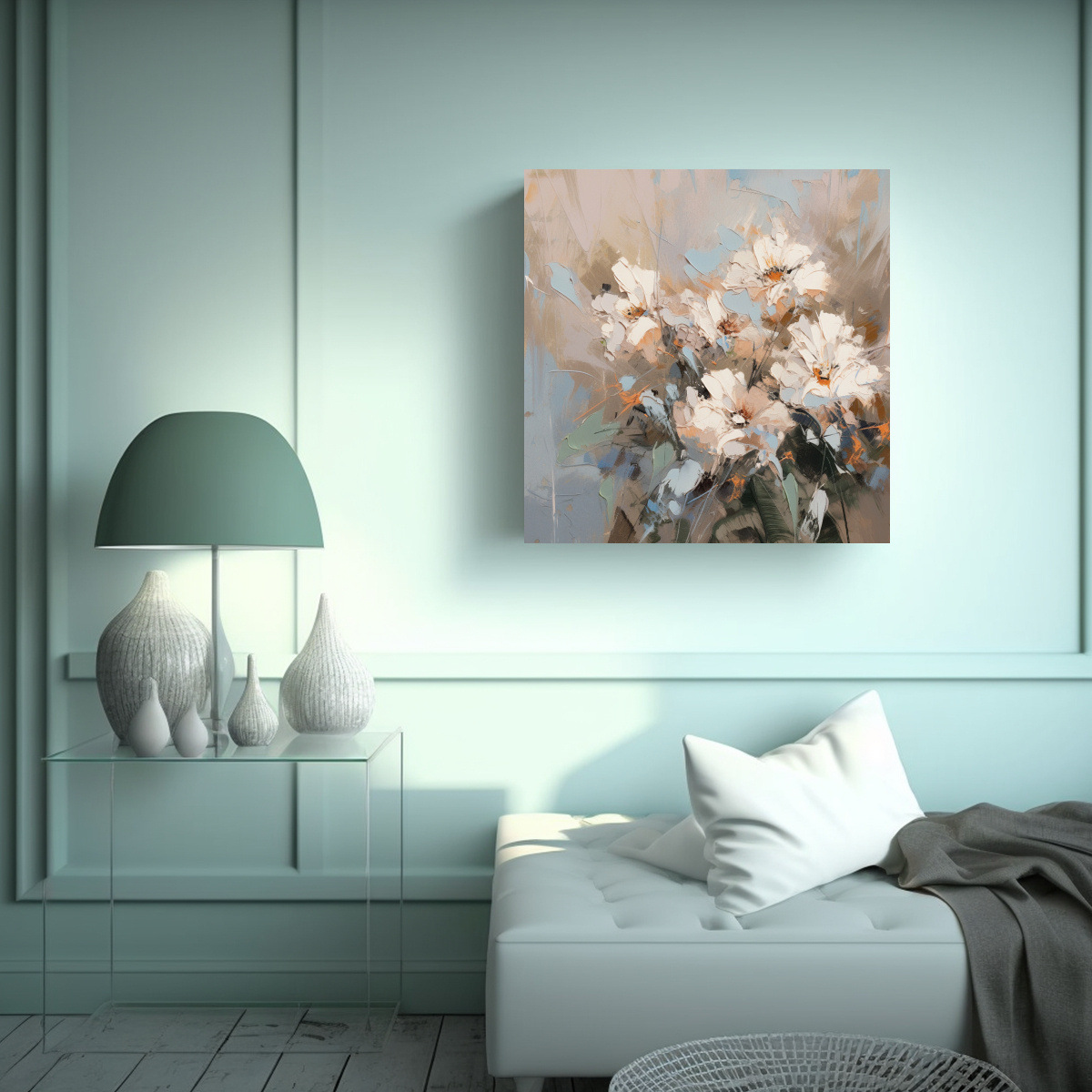 Este cuadro de flores en tonos suaves sería perfecto para decorar tu sala de estar Colócalo sobre un mueble en tonos neutros, como beige o gris, para crear un contraste elegante Combínalo con cojines en colores similares y algunos elementos decorativos en plateado para resaltar su belleza ¡Agrega un toque de naturaleza y sofisticación a tu hogar con este cuadro de DecoCuadros!
