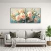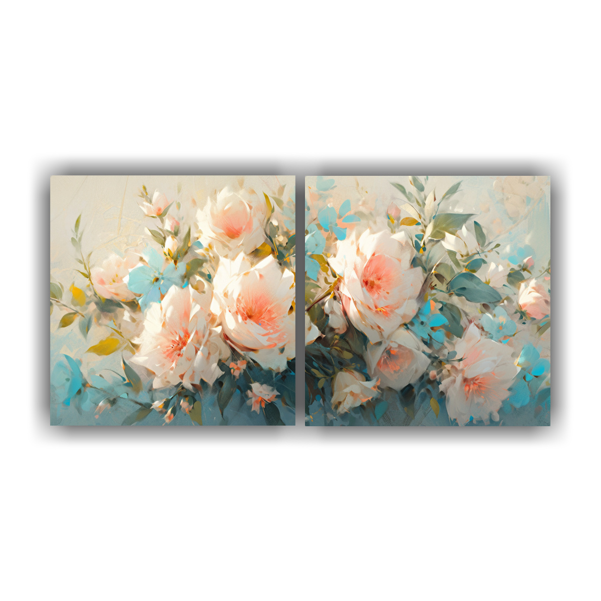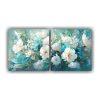Pintura En Lienzo De Flores En Tonos Turquesa Y Rosa En Decoración Con Efecto Visual De Dos Artes Concepto