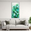 Pintura En Lienzo De Flores En Verde Y Cian Para Decorar