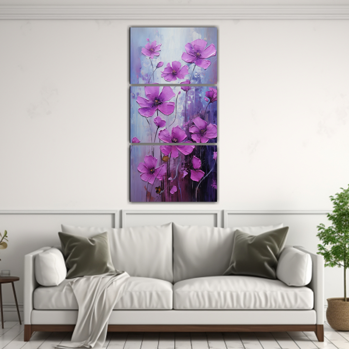 Coloca este cuadro en el centro de tu sala de estar para crear un punto focal vibrante y elegante Combínalo con cojines en tonos lila, morado y magenta para lograr una decoración armoniosa y sofisticada