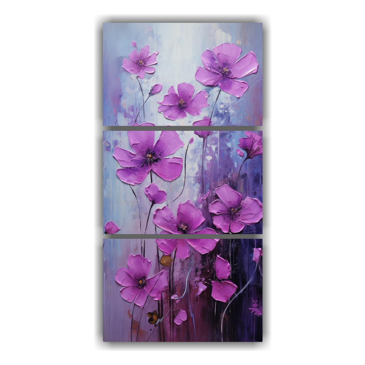 Pintura En Lienzo De Flores Moradas Y Magentas Con Movimiento Expresivo
