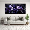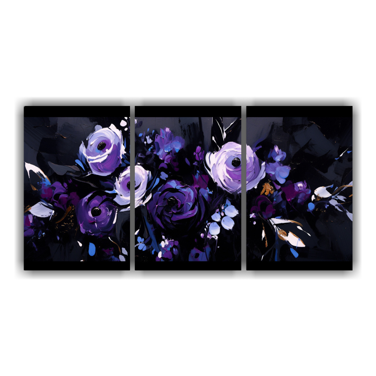 Pintura En Lienzo De Flores Moradas Y Negras Para Decorar Un Cuarto Tres Cuadros Cálidos.